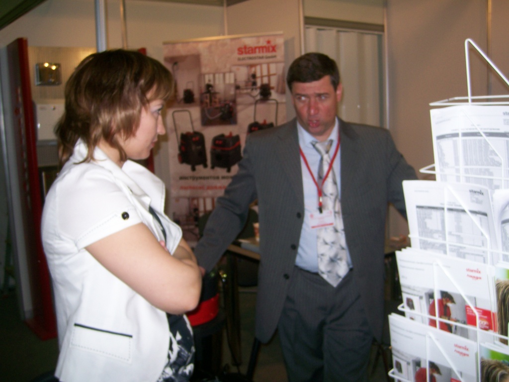 на фото: Уразаева В.Н. (группа компаний АРИС, Омск) и Матвеенко О.В. (группа компаний АЛГО) на стенде STARMIX