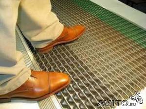 Рулонное резиновое покрытие с рифлениемРулонные резиновые покрытия являются эконом вариантом противоскользящих покрытий. Стоимость погонного метра от 810 р. (без НДС, и стоимости установки).